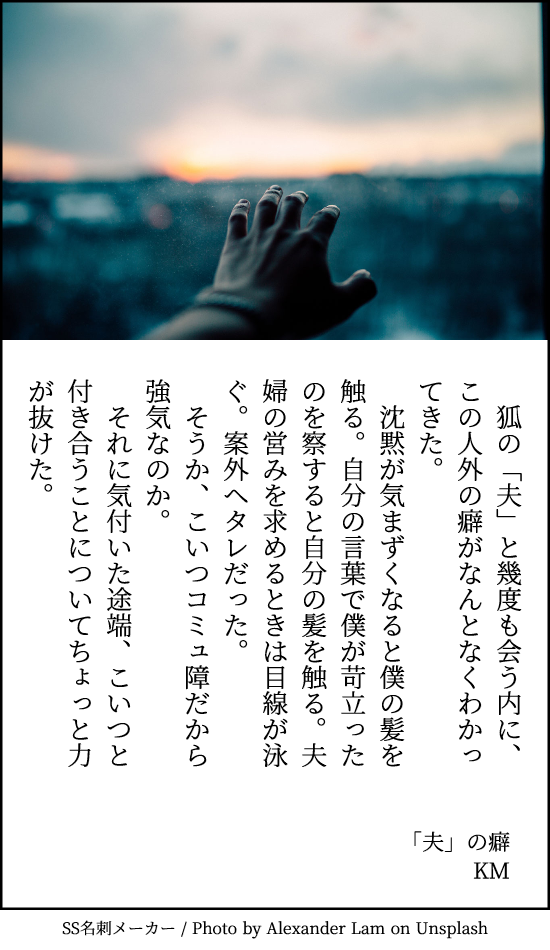 [PR] ×[PR]上記の広告は3ヶ月以上新規記事投稿のないブログに表示されています。新しい記事を書く事で広告が消えます。 「夫」の癖 月3本チャレンジ12月度1本目。続きから 。このお話(アルファポリスに飛びます)の二人。得体の知れない物が段々自分の中で形を得ていく、みたいな話です。この後ラブラブになる……のか!? [0回]PR コメント