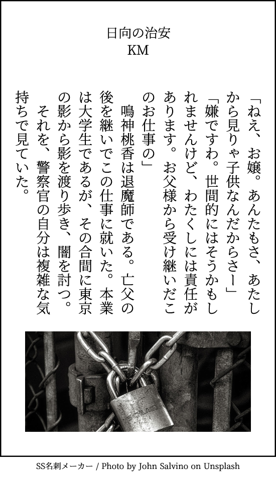 [PR] ×[PR]上記の広告は3ヶ月以上新規記事投稿のないブログに表示されています。新しい記事を書く事で広告が消えます。 お嬢様退魔師断片詰め合わせ 月3本チャレンジ6月度。やっつけ仕事だけどもう仕事が忙しくて忙しくて……。と言うことで続きから「お嬢様退魔師」の「こう言う要素がある」的なものになります。 ひとまず「離れに住んでるアイテム職人」、「表向き普通の事件として扱われるからそれに絡んでくる警察官」、「その上司」みたいな人はいます。 [0回]PR コメント